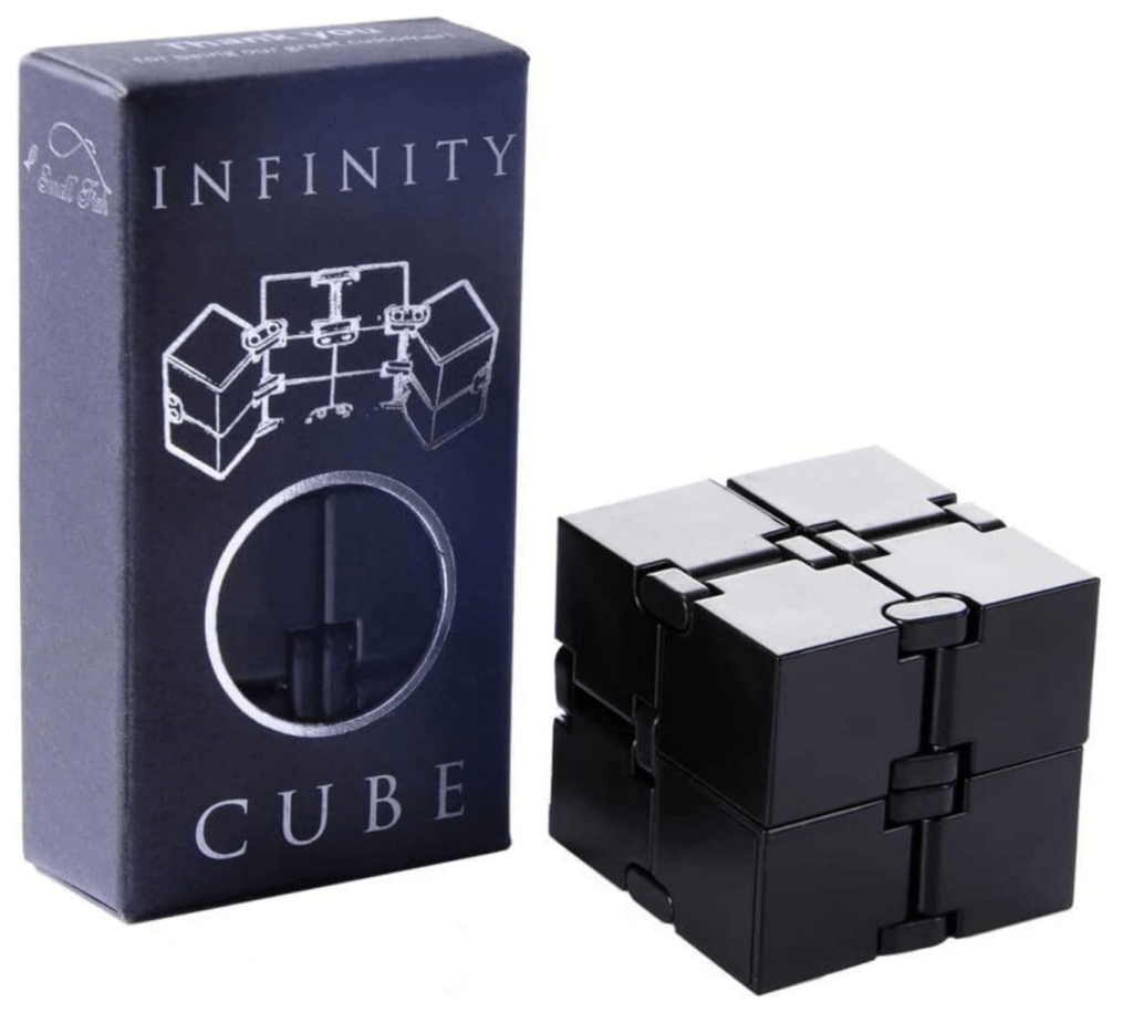 Infinity Cube – One of my favorite NON silent fidgets; it makes a satisfying clicking sound. I’ve had to replace mine a few times due to giving them as gifts when folks come over and can’t stop playing with it.